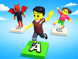 To move forward, press the keys corresponding to the letters on the tiles in front of you. You can use a real keyboard or click on the on-screen keyboard while competing against other players in real time. The path winds through snow-capped mountains, dark caves, and underwater depths. They’re full of treacherous traps like sharp spikes or lasers. Collect scattered coins to buy skins and rare costumes, and pick up springs for high jumps or freeze powers to slow down your competitors. You can even jump on an opponent’s head to temporarily stun them. Gradually, more characters will be added to the levels, testing your reflexes. Take the top spots in this timed race, make it onto the leaderboard, and update your wardrobe in the shop. Show off your skills in this crazy alphabet-themed race.