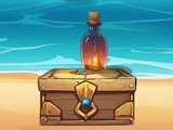 Bottle Bounce is an arcade game of dexterity where you control a bottle jumping from object to object along a specific route. The action takes place on the ocean shore on a sunny day, where platforms in the form of beautiful chests decorated with precious stones are placed in the air. The bottle can literally jump across these platforms, and you help it do so. The game is scored based on points and stars collected. The goal is to jump on as many platforms as possible without falling down.