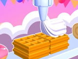 Press the cream nozzle when the dessert passes under the dispenser nozzle. The cream will start to squeeze out—hold it until you cover the entire surface. Release it in time so as not to spill the cream on the conveyor belt—every drop that misses will lower your score. Pay attention to the size of the dessert: small cupcakes require less cream, large waffles require more. If there is a key on the dessert, try to cover it completely for bonus points. After applying the cream, choose colored sprinkles and cherries for decoration. Pack the finished product in a box — it will be sent to the customer. Collect coins for completing levels. Use them to unlock new dispenser attachments, types of cream, and toppings. Improve your pastry shop to produce more desserts. This casual dessert-making game is perfect for relaxing with its pleasant graphics.