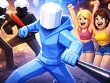 Temshchik: King of Respect Save the Girls drops you into a residential district of high-rise blocks where street gangs run the neighborhood. The main character starts out in the courtyard between these prefab buildings — this yard becomes his base. Active points appear on the map where street fights break out and girls are being held. By completing these tasks, the character gradually frees different areas and builds up his influence. The core gameplay is street fights, mission runs, and character progression. Wins bring in-game cash and respect — you spend both at the upgrade shop next to the starting area. There you boost punch damage, increase stamina, and pick up new weapons. As the hero levels up, enemies get tougher, and the rewards for finished jobs grow.