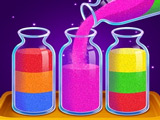 Tap the bottle you want to pour sand from, then tap the bottle you want to pour into. The top layer of sand moves to the second bottle. You can only stack sand of the same color, different shades cannot be poured on top of each other. Use empty bottles as buffers for temporary storage while you sort. Plan the sequence of moves so each color ends up in its own bottle. When a bottle is completely filled with one color, it goes into the container and frees up space on the field. If you get stuck on a level, you can watch an ad to get an extra empty bottle or a hint for your next move. Clear levels in order, earn coins, unlock new bottle sets, and solve calm logic puzzles at your own pace.